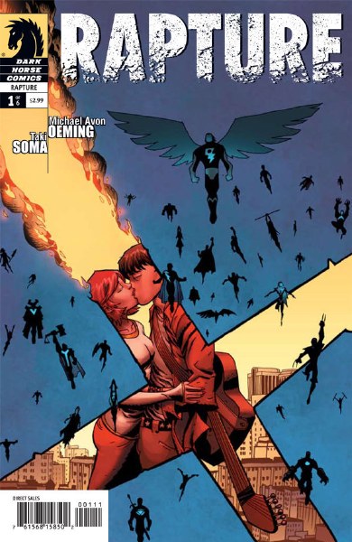 RAPTURE #1 (of 6) Michael Avon Oeming (W/A/Cover), Taki Soma (W), Val Staples (C), and Alex Maleev (Cover) On sale May 27 FC, 40 pages $2.99 Miniseries After warring for a century, Earth's greatest champions and villains suddenly disappear, leaving the planet devastated. Like a rapture, the Powers are gone and humanity is left behind to pick up the pieces. Amongst this wreckage, two lovers, Evelyn and Gil, find themselves separated by a continent and will do anything to find each other again. But when a strange being named "The Word" turns Evelyn into a champion with an angelic spear, she finds the force of her love for Gil clashing with her newfound power. Love and destiny collide in what will become the worst breakup-ever. Text and illustrations of Rapture? ? 2009 Michael Avon Oeming & Taki Soma.
