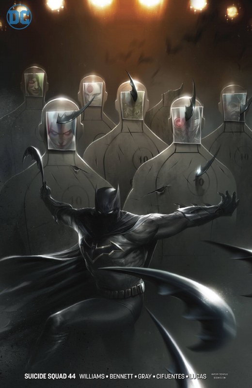 Guest-starring Batman! The noose tightens on the Squad in part four of Constriction, and someone may be dancing at the end of a rope before its all said and done. The murderous Kobra is looking to put the squeeze on Deadshots daughter, Zoe. Even with the Dark Knights backup, will the Squad be ready for Kobras bait-and-switch?