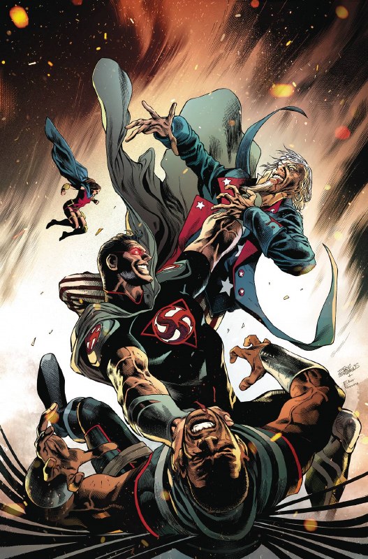 The Freedom Fighters are at last reunited, and Uncle Sam is leading the way to victory. But just as defeat of the Nazi regime seems in sight, Hitler II has one more trick up his sleeve... and this one is Kryptonian. It's Overman versus the Freedom Fighters in the slugfest to end all slugfests, and this shock ending will leave you breathless!