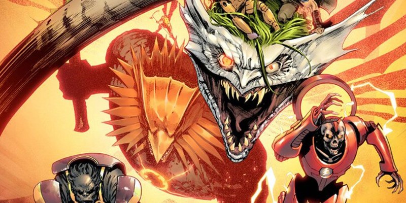 In the event-defining epic Dark Nights: Metal* the Justice League defeated the vile Barbatos and his Dark Knights to save our universe from sinking into the abyss of the Dark Multiverse. But...what if they failed? What if Barbatos reigned victorious? Enter an alternate timeline where the DCU as you know it has been dragged down into the darkness. Witness the Justice League you once knew* hideously transformed into dragons who serve at the mercy of evil. Duke Thomas* the Last Monitor* will have to seek out Nightwing and the few remaining survivors of the Metal event to assemble the Final Justice League in an attempt to save the Multiverse. Featuring a story by Metal architect Scott Snyder* rising stars Collin Kelly and Jackson Lanzing* and art by red-hot artist Karl Mostert* you won't want to miss the biggest* loudest arena rock concert in the history of the DC Universe!