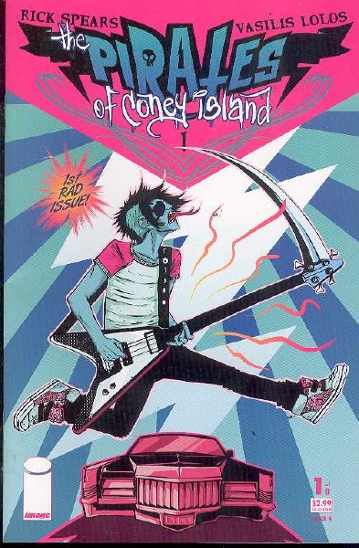(W) Rick Spears (A) Vasilis Lolos (CA) Becky Cloonan. RICK SPEARS writer of the indie hit Teenagers From Mars and hot international artist VASILIS LOLOS rock this riotous* teenage* romp through young love* car jacking and gang violence. In this first issue Patch arrives in Coney Island only to get his eye sliced out by Trish* the wicked bad leader of the girl gang The Cherries. Across town* Sal* a pizza-selling bookie* meets a nasty end delivered by a monstrous shadow with a shotgun. All the fun begins here in the first super-rad issue of THE PIRATES OF CONEY ISLAND!