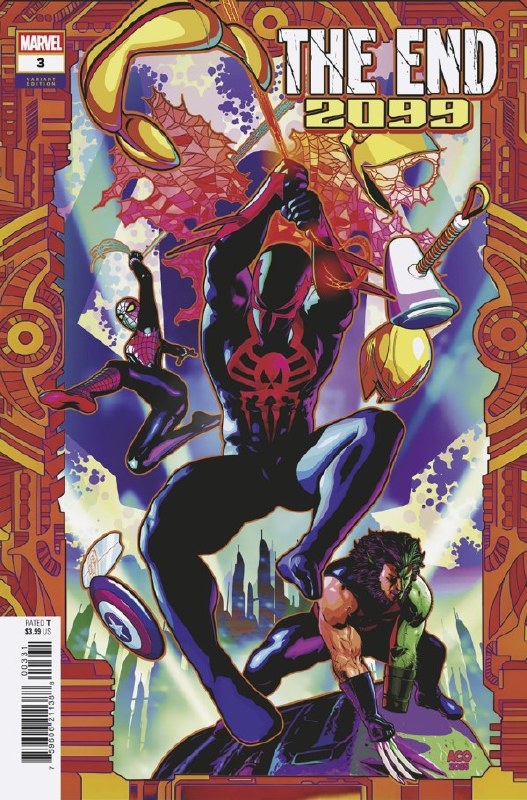 ATTACK OF THE KNULLIFIED! THE HEROES OF 2099 are on the run from the ABYSSAL WARRIORS, enemies pulled from across reality and infected by KNULL with SYMBIOTE seeds! In a war of magic and telekinesis will HOUSE OF M SCARLET WITCH defeat post-DARK PHOENIX JEAN GREY?! As the stakes rise, all hope rests on the SPIDER-MEN of 2099 and 3099... not to mention, MEPHISTO and his former herald... SILVER SURFER 2099!