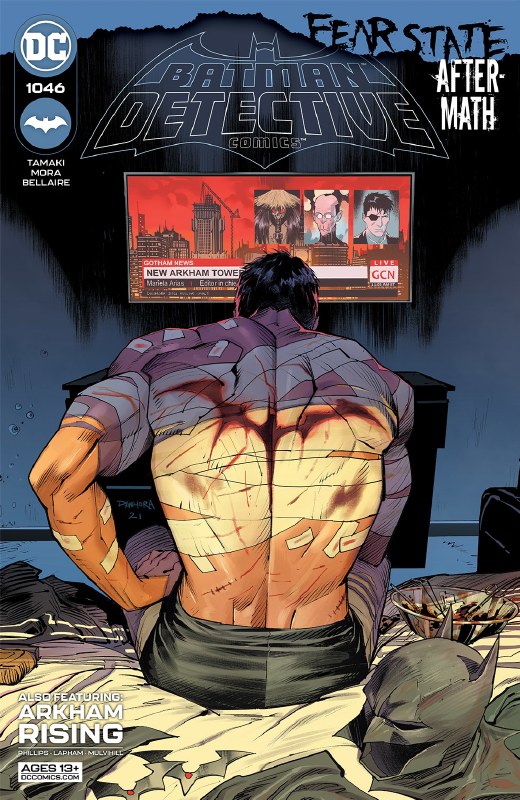 "Fear State" aftermath! Bloody, broken, and beaten…Batman had a mission after The Joker War. He would no longer look over Gotham City from Wayne Manor; he would move to the heart of the city, get closer to its people and its problems. The fight he pursued would be different, but after Fear State he finds himself disillusioned. He is no longer the protector the city needs, and definitely not the one it deserves. Batman’s last night in Gotham City before his international sojourn is here. Backup: Harley Quinn guest-stars in the culmination of "Foundations"! Must Gotham City have an Arkham facility, and if so…will it be any different, or is doom on its way?