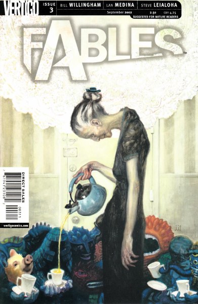 (W) Bill Willingham (A) Lan Medina (CA) James Jean. Written by Bill Willingham; art by Lan Medina and Steve Leialoha; painted cover by James Jean In stores July 17. Part 3 of 5-part "Legends in Exile." The mystery of Rose Red's murder unfolds at a feverish pace. Bigby Wolf grills the Black Forest Witch* who may have returned to her old eating habits. Snow White consults her boss* Fabletown's Mayor King Cole* who reveals his secret knowledge of Rose's love life. Boy Blue and Flycatcher spill far too much blood. And jailed suspect Jack receives two surprise visitors behind bars: an angry* knife-wielding stranger and Bigby* who's forced to reveal his true colors. MATURE READERS FC* 32 pg