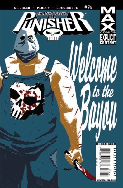 (W) Victor Gischler (A) Goran Parlov (CA) Dave Johnson. Written by VICTOR GISCHLER Penciled by GORAN PARLOV Cover by DAVE JOHNSON SPECIAL* DOUBLE-SIZED ISSUE! Deep in the Louisiana Bayou with cannibal rednecks in hot pursuit* Frank Castle is in a world of trouble. And if Frank thought Big Earl was a handful* wait until he gets a load of Junior* the Geautreux who makes the rest of the clan look like charm school graduates. To survive* the Punisher just might have to make peace with the cargo he was hauling down the back roads in his trunk cargo that just got free and wants a little payback. 48 PGS./Explicit Content ...$4.99