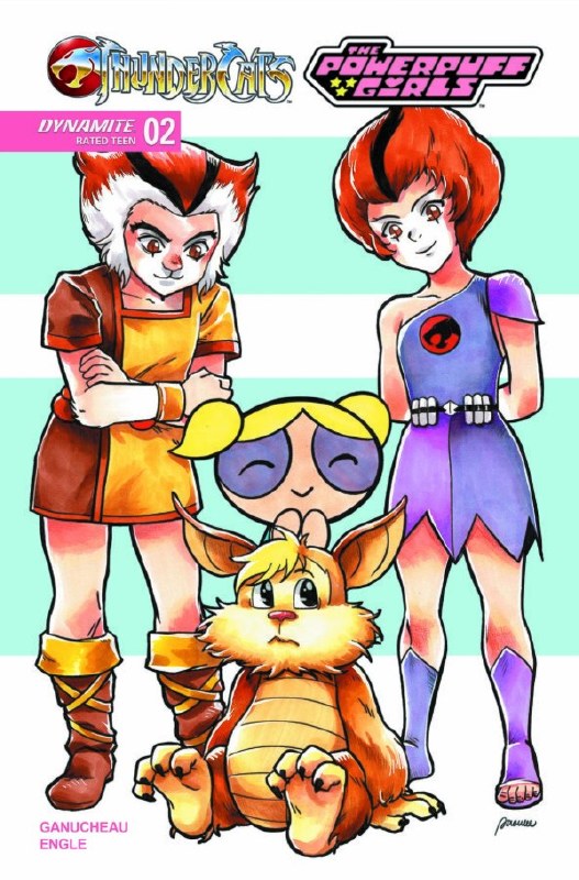 (W) Paulina Ganucheau (A) Coleman Engle (CA) SAOWEE. THE MYSTERY OF THE MISSING THUNDERCATS DEEPENS! After being transported to Third Earth (where their powers don't work) by the malicious Mojo Jojo* the Powerpuff Girls have teamed up with locals Snarf and Tygra to try and figure out how to get home to Townsville. But they've also discovered that there's evil afoot in this strange new land and what kind of heroes would they be if they didn't stay and help? The Titanic Trio soon discover that things are even weirder on this world than they first appeared. Following an altercation with more crystal-possessed creatures* the girls and their 'Cat companions find themselves following a mysterious signal while riding on the back of a giant Arietta bird. Their ultimate destination has yet to be determined but knowing this crew* whatever awaits them will be equal parts perilous and adorable! Interdimensional tour guides PAULINA GANUCHEAU and COLEMAN ENGLE hit all the hottest sights in ThunderCats/The Powerpuff Girls #2 with complimentary souvenir covers available from GANUCHEAU and ENGLE as well as CORAN KIZER STONE* SAOWEE* and NICOLETTA BALDARI!