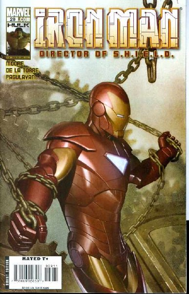 (W) Stuart Moore (A) Roberto De, Carlo Pagulayan (CA) Adi Granov. Written by DANIEL KNAUF & CHARLES KNAUF Penciled by ROBERTO DE LA TORRE Cover by ADI GRANOV 'Damasqus' Part 1 of 4 A war has broken out among organized crime factions, and innocents are killed. As Director of S.H.I.E.L.D., Tony Stark is divided: does his organization work diplomatically, or start kicking butts and taking names? When Madame Masque enters the picture, sparks fly and an ancient legacy of the Maggia crime family is revealed. 32 PGS./Rated T+ ?$2.99 PRODUCT UPDATE (032608): Iron Man: Director of SHIELD #29 will be written by Stuart Moore, not the originally solicited Daniel and Charles Knauf. Also, there is new solicitation information that differs from what was originally solicited: "Beginning 'With Iron Hands,' a four-part epic! When an unseen terrorist throws a struggling nation into chaos, Tony Stark's past a munitions manufacturer collides with his present role as Director of SHIELD. Is Tony himself responsible? And what's his connection to the deadly menace growing within SHIELD itself?